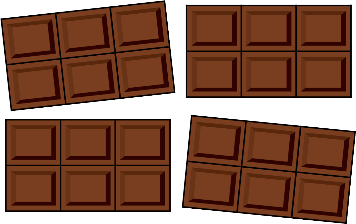 チョコレートを同(おな)じ大(おお)きさになるように分(わ)けます。4人(にん)で分(わ)けるにはどのように分(わ)けたらよいでしょう